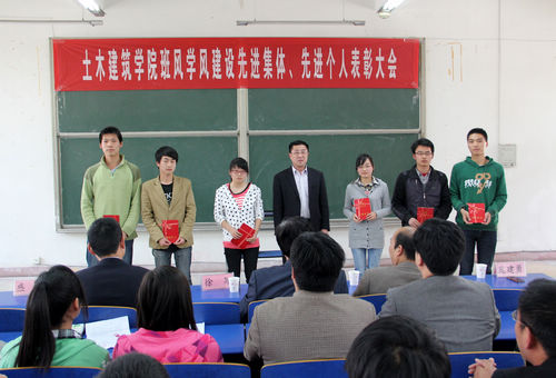4月12日下午,土木建筑学院班风学风建设先进集体、先进个人表彰大会在北校区2101教室顺利举行。学院领导班子成员以及各年级辅导员及部分学生代表参加了大会。会议由院党委书记盛真主持。